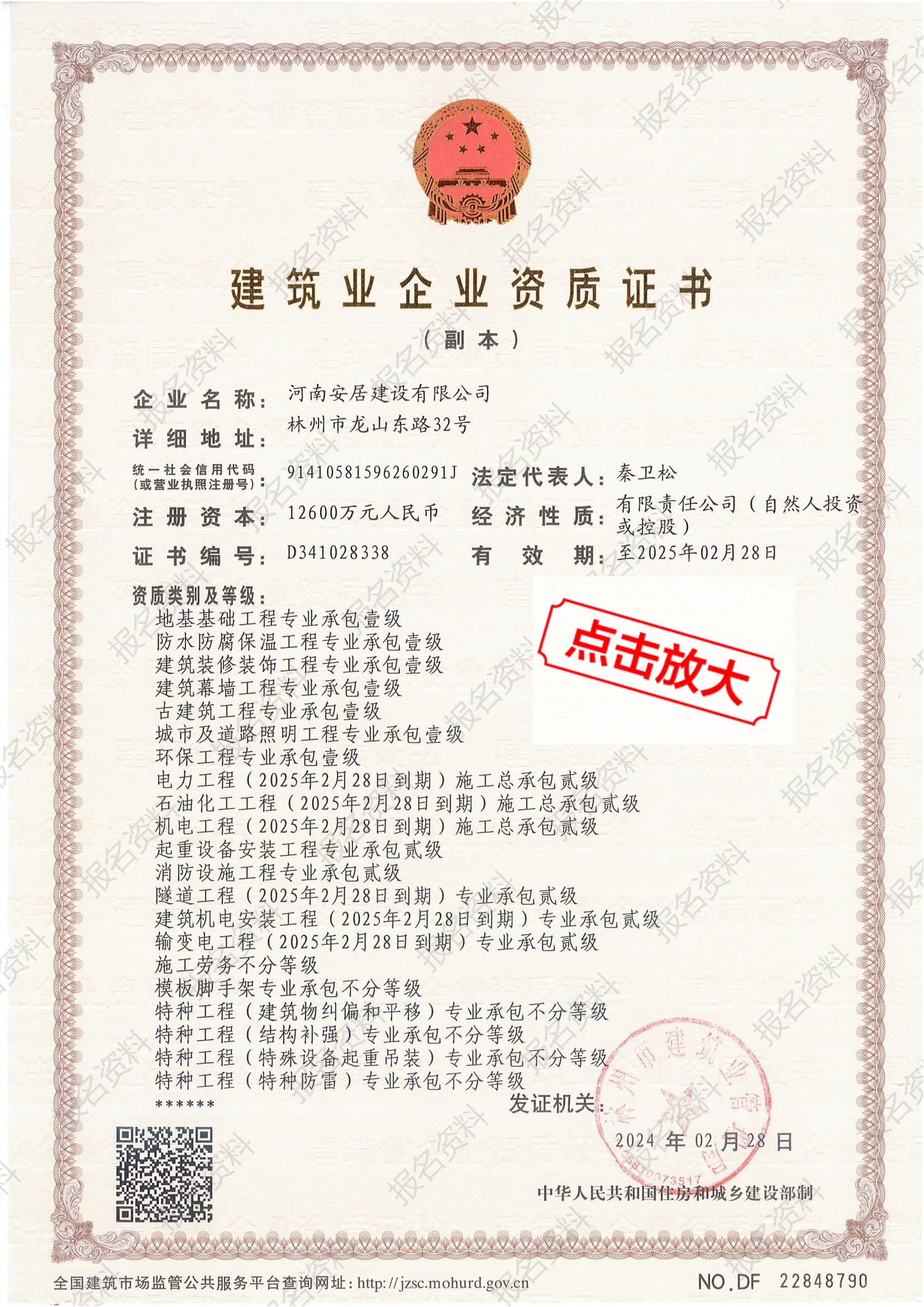 房建、市政十項(xiàng)一級,共二十余項(xiàng)資質(zhì)
